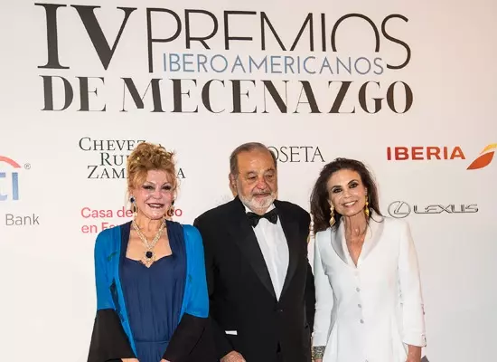 La Baronesa Thyssen y el Ing. Carlos Slim Helú recibieron el premio al mecenazgo en la Cuarta Edición de los Premios Iberoamericanos de Mecenazgo, que promueve la Fundación Callia, por su labor realizada en la conservación, promoción y difusión del patrimonio y el talento artístico de Iberoamérica.