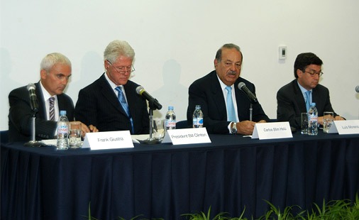 El Presidente Bill Clinton, el empresario canadiense Frank Giustra y el Ing. Carlos Slim Helú, en compañía del Presidente del Banco Interamericano de Desarrollo, Luis Moreno, anunciaron dos nuevos proyectos para la “Clinton Giustra: la Iniciativa de Crecimiento Sustentable” (CGSGI por sus siglas en inglés) con el objetivo de constituir un nuevo fondo de 20 millones de dólares para fortalecer a la pequeña y mediana empresa en Colombia, así como un apoyo para la realización de 50 mil cirugías de catarata en Perú, por un periodo de tres años, además de 20 millones de dólares adicionales para proyectos educativos en México, que fomenten la inclusión digital de niños y jóvenes en todo el país, de los cuales 10 millones serán donados por el Ing. Slim y los otros 10 millones por el CGSGI.