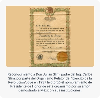 Gracias a su inteligencia y tenacidad en el trabajo, Don Julián Slim Haddad se convertiría en un prominente empresario y padre de familia ejemplar, que supo inculcar en sus hijos, tanto los valores morales, como la dedicación y conocimiento para el trabajo.