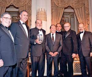 Mr. Carlos Slim joins with pop singer Paul Anka, Sergio Marchionne, former edition’s award, anchorman Larry King, Peter Tichansky, BCIU’s Executive Director, and BCIU’s council members.
