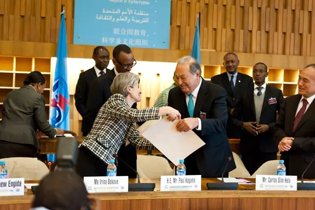 Mr. Slim, expressed “I congratulate UNESCO on these 70 years of contributions; its mission has been fundamental in the context of this new era of civilization. Its efforts in the broadband sector underline the important and urgent need for us to use technology in education and training for employment”.
